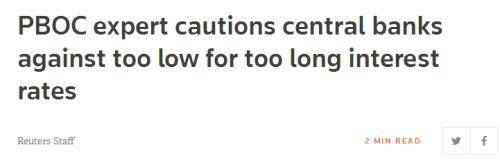 路透社发文中国央行专家警告央行低利率政策时间过长。