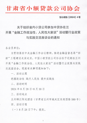 关于组织省内小贷公司参加中贷协在兰 开展“金融工作政治性、人民性大家谈”活动暨行业政策与实践交流座谈会的通知
